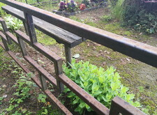 Кладём брусчатку, замываем её, пока она высыхает – приступаем к перекраске ограждения.