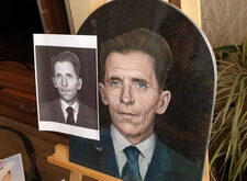 Ещё один заказ на нанесение цветного портрета на плитку из чёрного гранита. После предоставления фотографии и её дальнейшей компьютерной ретуши, мы предоставили клиенту на выбор три самый оптимальных варианта нанесения портрета на гранит.