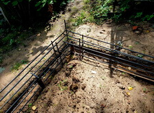 Затем мы приступили к подготовительному этапу установки ограды. Конструкция была объёмной, а потому было необходимо сначала сделать надёжный бетонный каркас. Мы выкопали траншею, а затем там, где это было необходимо, заколотили металлические сваи.