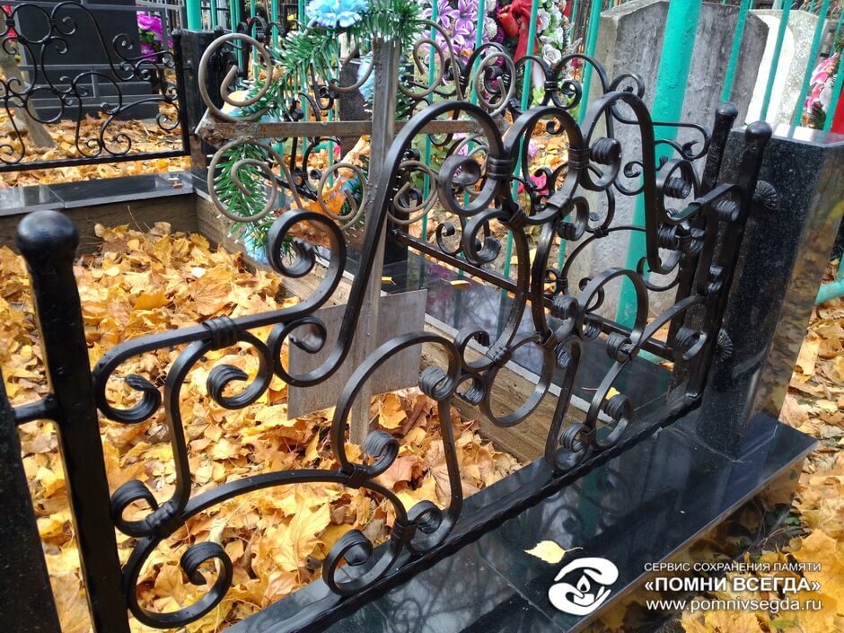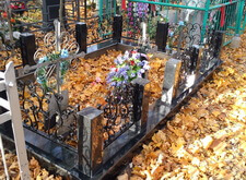 В этом заказе необходимо было изготовить и установить комбинированную ограду. Гранитные столбы, гранитная подложка и облицовка и металлические пролеты из кованных элементов. В дальнейшем необходимо будет поднять уровень пола до одного уровня с подложкой и установить памятники.