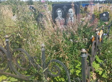 Мы уже занимались работами на этой могиле в прошлом году. Мы наносили гравировку портрета и сделали надпись. В этот раз мы сначала уложили брусчатку и надгробные плиты. Через несколько недель покрасили ограду, сделали покраску дешевле, как уже постоянному клиенту. Вот что нас встретило при первом посещении могилы, дело было весной. Работу начали через три недели.