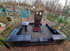 Затем мы облицевали гранитном основание для памятника, немного приподняв его над бетонным периметром. Все работы на участке проводились при помощи уровня, а потому перекосы из-за перепада высот абсолютно исключены.