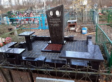 Дождавшись окончательного высыхания брусчатки вновь приезжаем на участок. Там мы восстанавливаем надписи на надгробье, размещая у его подножья восьмиконечный крестик. На этом наша работа на данном участке окончательно завершена. В результате из ничем не примечательной могилы появился презентабельный мемориальный комплекс, декорированный столиком и двумя лавочками в оградке.