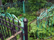 Следующим этапом стала установка ограждения. Уже готовую оградку мы привезли на участок, там собрали и выставили по периметру могилы не укрепляя. Параллельно с монтажом ограждения мы вкопали трубы на месте будущих цветников.