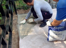 Приехав вновь на кладбище, мы взялись за очистку места захоронения от посторонних элементов: срезали болгаркой старое ограждение; пропололи сорную траву, а также разровняли землю, готовя её к покрытию бетонной плиткой.