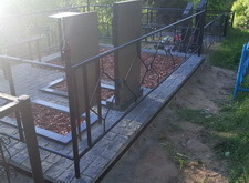 В первую очередь мы очистили территорию участка от сорной травы и прочего мусора. Обойтись совсем без демонтажа не получилось, однако мы сохранили нетронутым ограждение участка. Для создания чёткого периметра будущей могилы, мы подготовились к заливке опалубки.