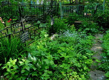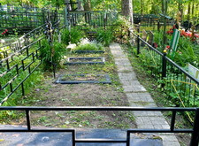 В данном случае клиент обратился к нам за уборкой большого места захоронения без наземного покрытия. Сорняк густо разросся на участке, практически полностью закрыв собой бетонную плитку, из которой была выложена дорожка к памятникам.